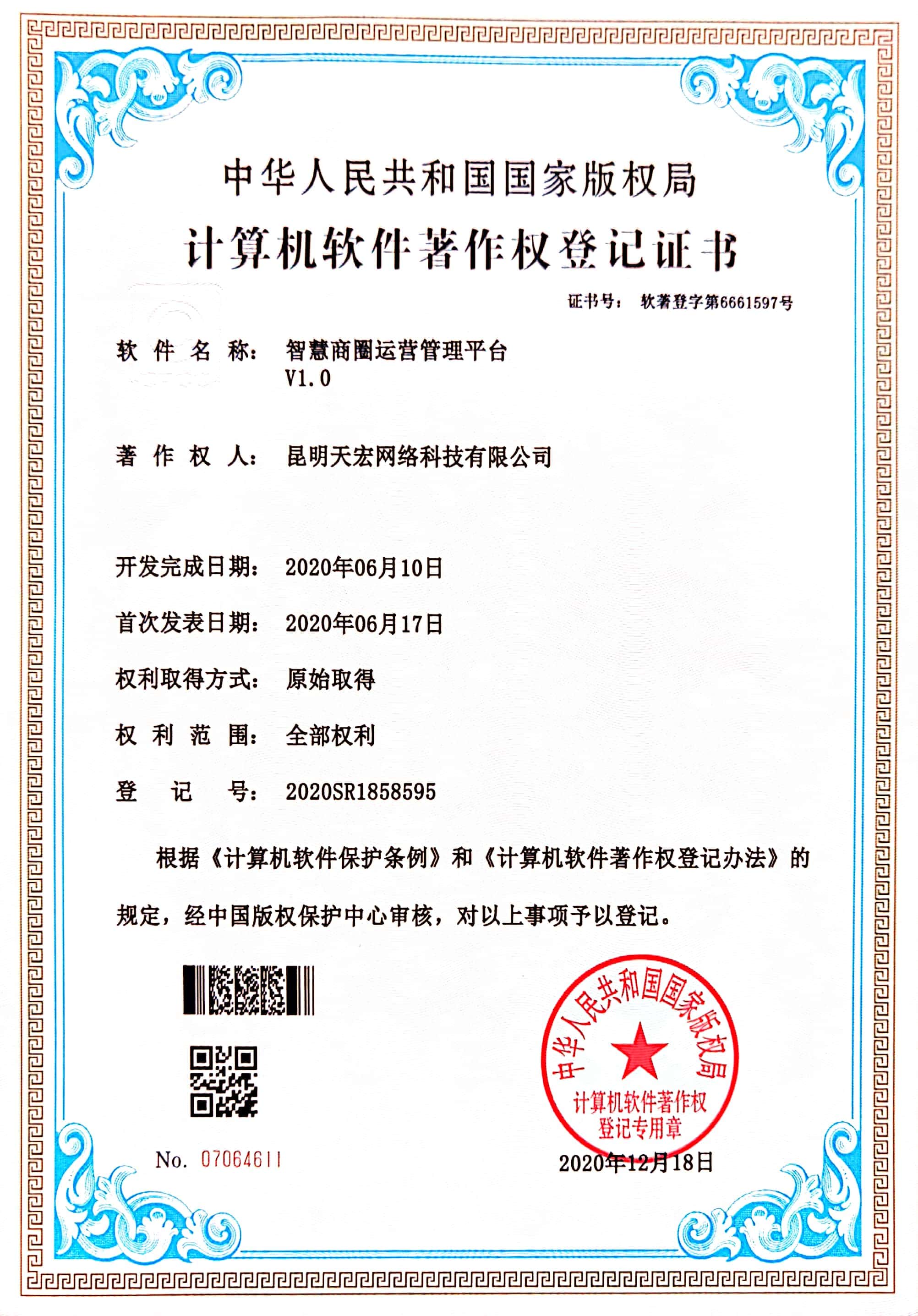 天宏網絡通過不斷的研發創新,現擁有50多項計算機軟著證書,包括多商家點餐系統、門店收銀管理系統、通用OA協同辦公管理系統、智慧商圈運營管理平臺、天宏健康智慧+系統、同城O2O管理系統等。
